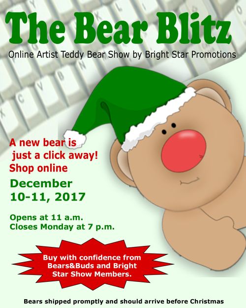 Die nächste Onlineshow findet am 10. und 11.12.2017 statt. Schaut doch mal vorbei. https://www.bright-star-promotions.com/OnlineShow/BearBlitz2017TeddyBear2-dayShow.htm